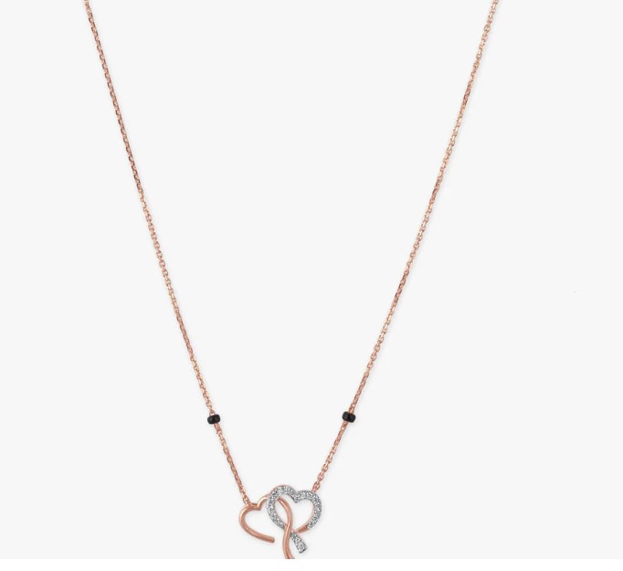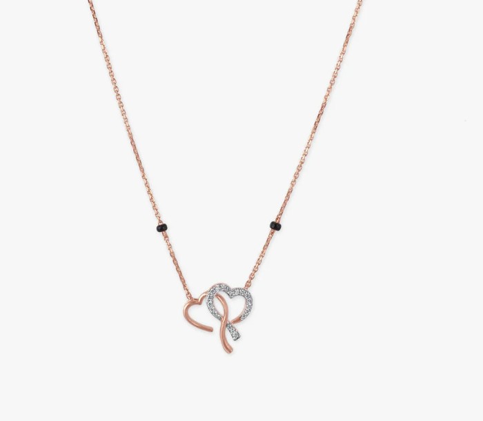 Intertwined heart forms shape this 18 Karat rose gold Diamond Mangalsutra, accented with classic black beads and illuminated by natural Diamonds for a light, joyful expression of everyday love.